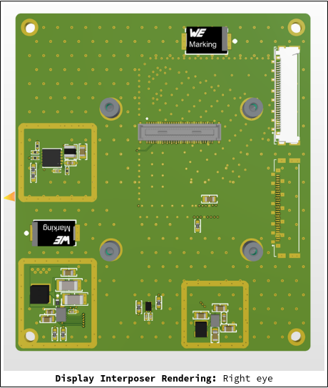 - Display Interposer finished. We have finished our right-eye Display Interposer Board, and are working on mirroring the board to the left eye. This basically involves rotating the existing design and changing some minor details.