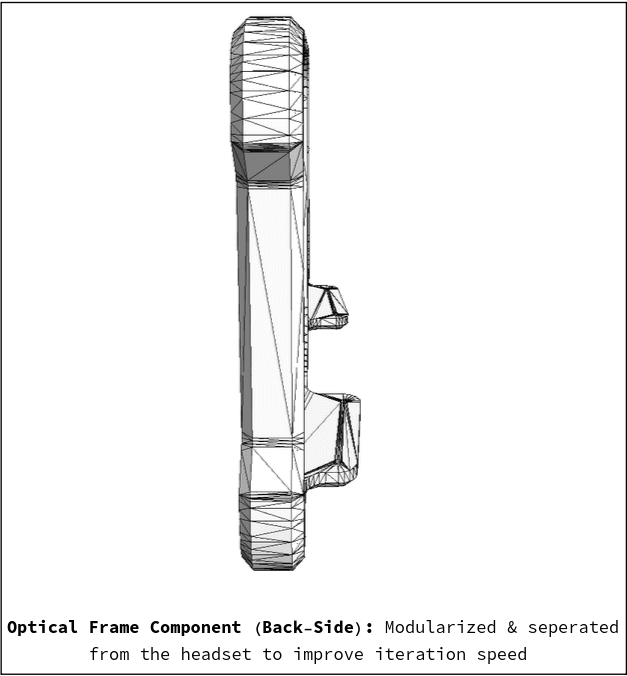 Optical frame components separated. We have modularized and separated the headset's "optical frame components" from the exterior headset: