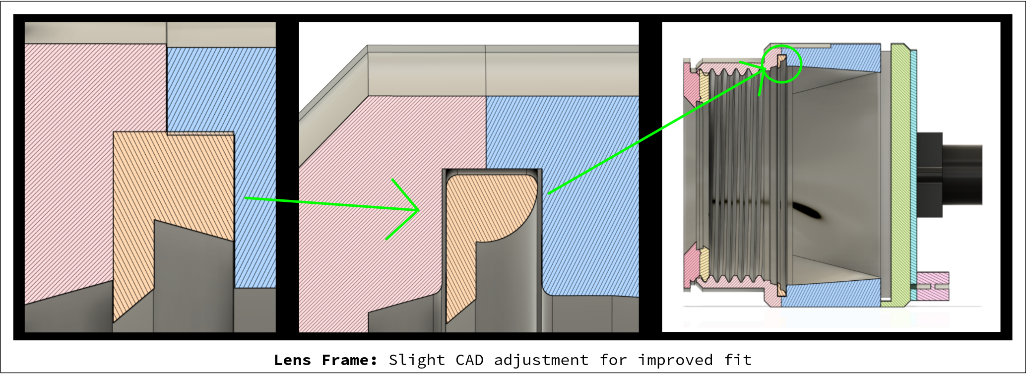 We ran into a lens sizing issue which required some sanding to help achieve a (temporary) fix. Our lens CAD has been updated so that we don't run into this issue again on future iterations: