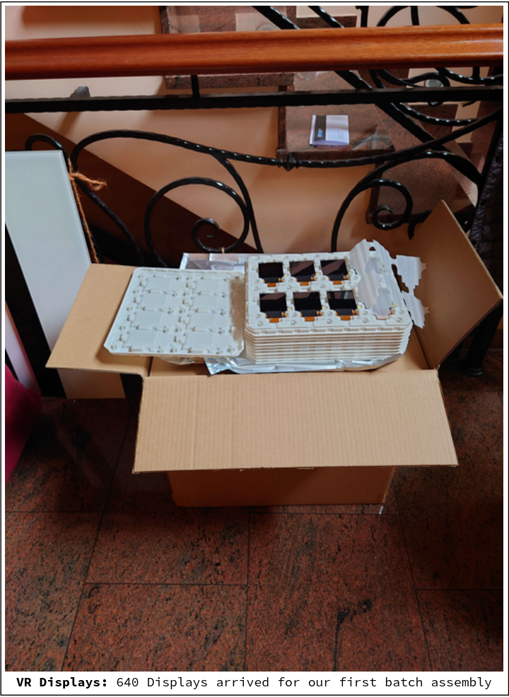 VR Displays: 640 VR displays have arrived from our vendor (with another 920 on the way).